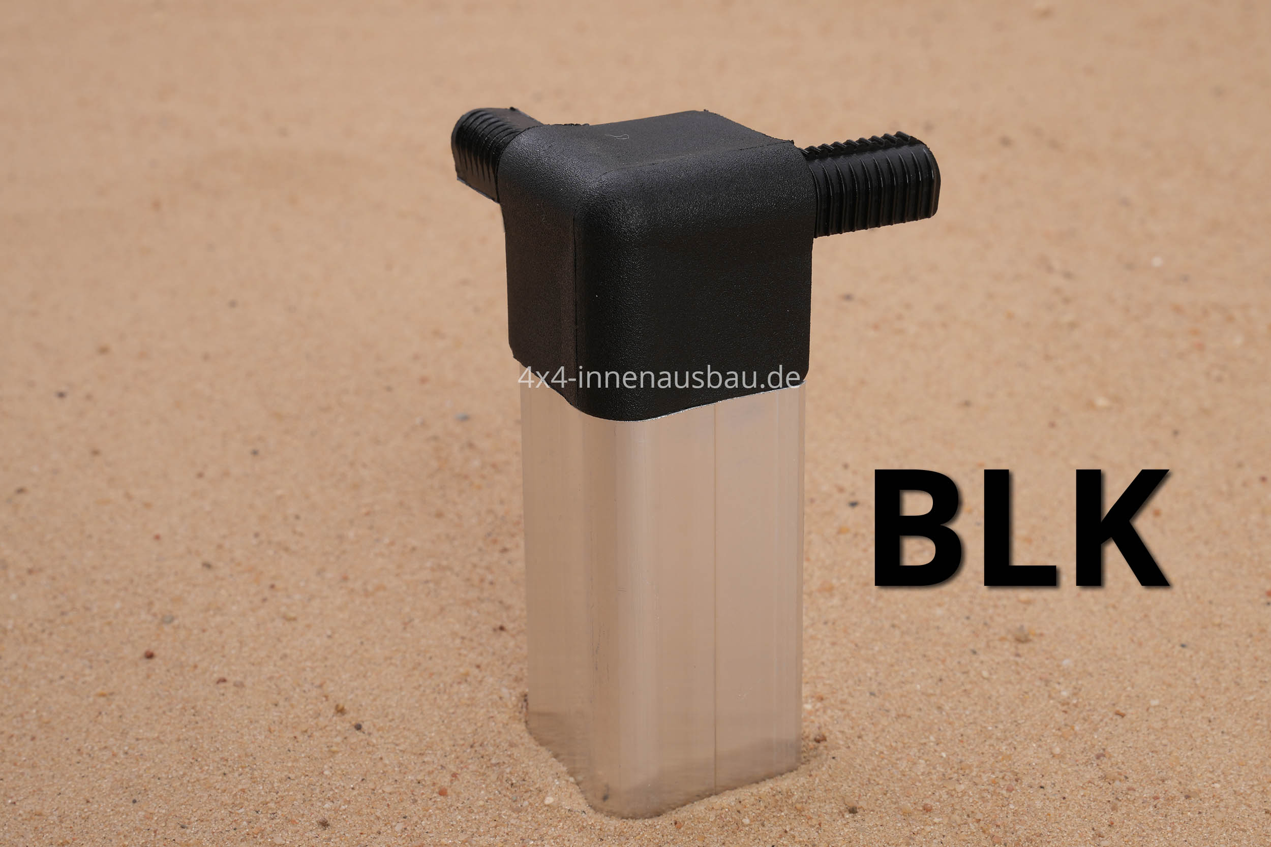Die ineinander greifenden Kunststoffecken ermöglichen eine schnelle Montage von Korpusen. Die Eckstücke haben ein Planungsmaß von 30 x 30 mm und sind aus hochwertigen Kunststoff gefertigt. Diese Ecken sind nur für Rahmenprofil KF100 geeignet.